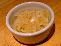The minced garlic sauce had a fairly strong garlic flavor, which was described by the taster as sweet, mellow and slightly tart and spicy. The crushed garlic sauce had a garlic flavor that was similar to the minced garlic sauce in terms of potency, but different in terms of character. The taster described the crushed garlic sauce as fairly sour up front, with a slightly spicy but mostly bitter tail and an almost metallic aftertaste. The microplaned garlic sauce was by far the strongest of the three, characterized as extremely potent. The taster described it as having a very spicy and peppery flavor, with a little bitterness and no detectable sweetness. In terms of preference, the taster expressed a very strong preference for the minced garlic sauce, which was described as delicious. The crushed garlic sauce was described as edible, but not very good. The microplaned garlic sauce was described as very bad, and not at all pleasant.