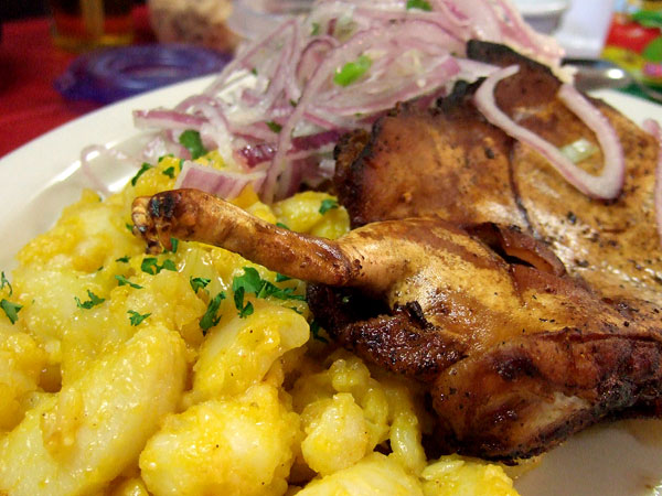 What you see here, with apologies to anybody who cuddled one as a kid, is Cuy Frito, or fried guinea pig. I'm sure there are those who will squirm at the thought of consuming our furry little friends, but while guinea pigs have been treated as domesticated pets in the West since the 16th century, they've been raised as a food source in the Andes, to which they're native, for millenia. If you subscribe to the theory that any given type of animal should be universally treated as pet or meat but not both (I don't), this one's a losing argument if you're on the pet side of the aisle.