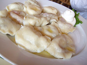 Naturally, pierogi can be found in abundance, and this was the dish that actually did snare my honorable mention last year.  Maybe I've just never had good pierogi, I don't know.  It wouldn't surprise me.  My pierogi experience isn't exactly extensive.  But these were a real eye-opener for me, a far cry from the dense, leaden lumps to which I'm accustomed.  Make no mistake, this is a dough, not a wrapper.  But despite its body, it's light and delicious and easy to consume in mass quantity.  I enjoyed the sweet pierogi, even if I couldn't get excited about them.  There were a number of fruit fillings, not overly sweet, kind of tart, actually, but I could take them or leave them.  The savory ones, however, were incredibly good, drowning in butter and served with fresh sour cream.  There were potato and cheese pierogi, a finely ground and lightly seasoned meat version, and a sauerkraut and mushroom -- probably my favorite of the three -- that was surprisingly mellow for a sauerkraut concoction.  This much food probably shouldn't disappear as quickly as it did.  But while I never quite understood the devotion before, now I get it.  These are some dynamite dumplings.