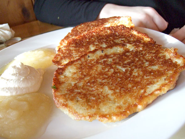 Dishes that did rock me, and in no small measure, started with the Hungarian Style Pancake.  It starts out as a massive plate-sized potato pancake which is then folded over a rich, meaty goulash before being trimmed with an obscene amount of sour cream.  This is just hearty upon hearty upon hearty, but what sets it apart from typically clumsy meat and potatoes dishes is the incredible amount of care that typifies everything I've had at Smak-Tak.  It starts with that thick potato pancake that's moist and buttery, but has been griddled to a perfect crisp, particularly along the edges.  The goulash is wonderful, with a deep but clean flavor that makes it feel more sophisticated than a simple meat stew, and the sour cream is light and fresh.  On my first visit, this was almost my favorite of the entrees, eclipsed only by a regular special that happened to be on the menu that day.