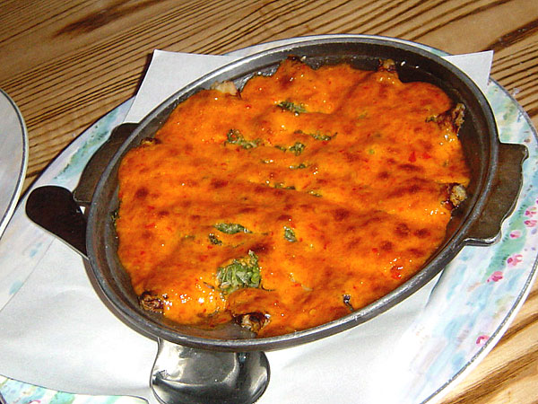 Nobu's signature dish. The fact that he revealed the recipe to Martha Stewart, of all people, only strengthens my belief that she is a vicious demon and must hold some dark sway over his soul. Though in truth, the dish is almost worth selling your soul for. A succulent, rich, fatty cod is marinated in miso, mirin, sake and sugar, and broiled to caramelize. It is frequently imitated, but most make the mistake of going far too sweet, upsetting the sweet/salty balance. Do youself a favor. Eat the skin