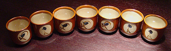 In Tokyo's Ginza district, on Ginza-Dori, is a restaurant named Zakuro. Zakuro is traditionally decorated, with folk art on the walls and kimono-clad swat teams of hostesses doing their utmost to make you comfortable. Though Zakuro serves a variety of Japanese foods, their specialty is nabemono -- a Japanese genre of pot-cooked foods including the well-known sukiyaki and its lesser-known cousin, shabu shabu. (Zakuro was also the site of the $50 peach debacle, but that's another story for another time.) Not only is the service impeccable, but in a particularly nice touch, every time you leave the restaurant there's about a 50/50 chance that you'll be given one of their pottery teacups as a parting gift.