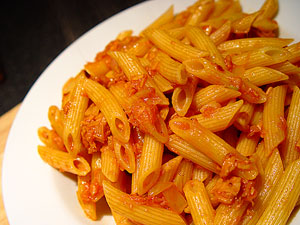 1 Lb. penne (or Spaghetti, or Fusilli, or whatever you have lying around... this is midnight pasta)
