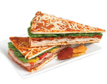P'EatZZa™, "a marriage made in 7-Eleven heaven", is essentially a deli sandwich with pizza in lieu of bread. Currently, there is a turkey and pepperoni version with parmesan ranch spread and a ham and salami version with banana peppers and vinaigrette. A third Greek-style salad version is forthcoming.