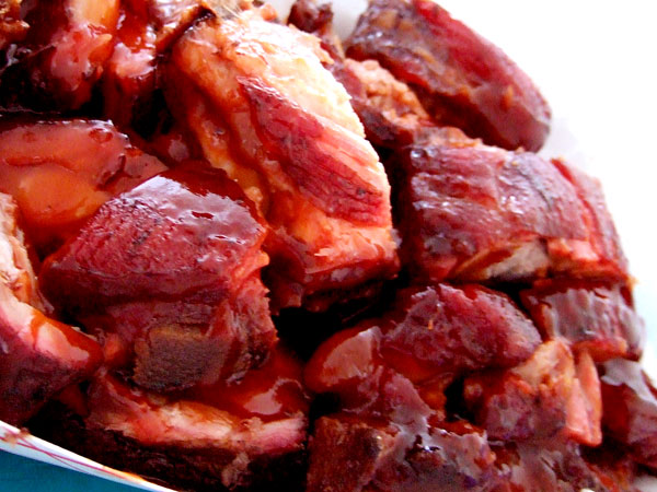 Right off the bat, it's clear that Robert Adams knows his way around a pork shoulder. The flavor is fantastic... intense and porky with a potent smoky component through and through. But while I dug the flavor, I adored the texture. It probably goes without saying that this isn't the oversauced shredded pork mush that frequently passes itself off as BBQ. There was nothing uniform about the feel. This was a chaotic pile of highly varied pork bits, some extremely moist and tender, some chewy and caramelized, and the rest somewhere in between. I love the fact that Honey 1's pork has some bite. Though I realize that "cut it with a spoon" tenderness seems to be the most widely popular gauge of 'cue quality, I am increasingly becoming a member of the school that expects its pork to put up a bit of a fight.