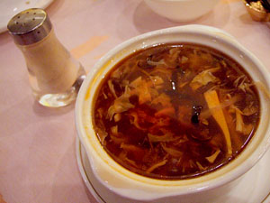 and sour soup, with chinkiang vinegar subtly but firmly holding down the sour half while chile oil and white pepper tag team the hot half.