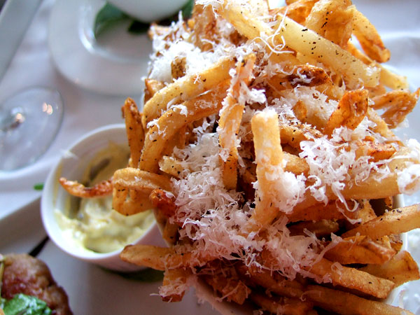 touch heavy for the duck patty, but I was finding it difficult to complain. The burger was also accompanied by a nice pot of herbed frites with an aioli dip. The dish was clearly upscale, but it still stayed true to its fingerfood roots, a little messy and completely satisfying.