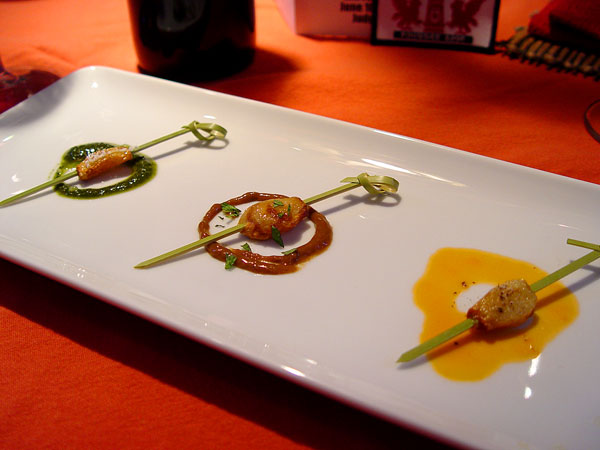 And here are the photos and descriptions. I (perhaps unwisely) opted to do six courses this time around, since the 1,000th dish scored at Chicago Iron Chef fell in the first course, and I really wanted to serve it. The challenger leads off, unless the Iron Chef does an extra dish. So I did an extra dish :-) Also, thanks to Lindsay Bartolone for this year's pictures.