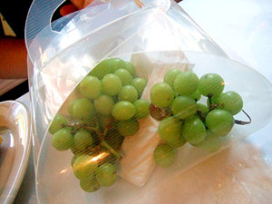 My ladylove had the Cheese Box, which is exactly as billed. It seems like more of a takeout item, since it arrives at the table in a large plastic container. It's comprised of three rather generous hunks of cheese, accompanied by a chunk of good, crusty bread, plenty of grapes and toasted nuts. Only problem was we didn't end up with either the grapes or the nuts. Of the three small bunches of grapes, two were quite moldy in places. And there were no nuts to be found. In the staff's defense, we didn't really give them a chance to rectify the situation. When we pointed out the moldy grapes and asked our server to remove them, we didn't make it clear that we expected to receive more grapes. And by the time we realized that the nuts were missing, our entrees had already come and we decided not to make an issue of it. But disappointing, nonetheless.