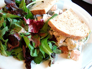 Southport Grocery & Cafe has more than cupcakes. It's also a small specialty grocery and a cafe with fairly extensive breakfast and lunch menus. We figured anyplace that can make cupcakes that good must have something going for them, so this afternoon we finally popped in to grab some lunch and check out the other offerings. The grocery is nice, but small. There are teas, oils, vinegars, chocolates, spices, etc. Stylish packaging seems to be a prerequisite, but the products themselves are solid. It isn't style over substance. Given the small selection, however, it's more suited to cute bottle impulse purchases than any kind of serious specialty food shopping. There is a small case of prepared foods that we didn't get a chance to try, but the offerings seem nice enough. And so, having eaten their phenomenal cupcakes, perused the nice (if limited) selection of specialty foods and case of prepared foods, we were looking forward to a tasty lunch.