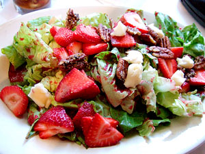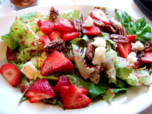 The menu is almost exclusively comprised of salads and sandwiches, and I'm a sucker for upscale salad and sandwich shops, so I had no trouble picking out a couple of options that piqued my interest. I started with their Strawberry-Beet Salad. I figured strawberries are in season, it's a summery day, and I adore beets. The components were mostly tasty in their own right: some peppery pecans, rosemary jack cheese, decent fresh sliced strawberries and a vinaigrette that seemed largely comprised of pureed beets. The exception was the greens themselves, which were limp and lifeless. But it was clear on first bite that the dish just wasn't working. I think the main culprit was a battle between the very savory, salty beet vinaigrette and the sweet strawberries. The pecans worked fairly well, but the cheese was just kind of there... it was a mild-mannered cheese that didn't clash with anything, but it didn't seem to contribute anything to the dish, either. The salad was the kind of combination that may sound good on paper (it did to me), but one taste and it was clear that the dish was a mess of bad pairings.