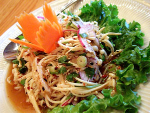 You don't, of course, and I didn't, and I was treated to two absolutely fantastic meals. Both TAC Quick and Spoon Thai are casual, inexpensive little joints that serve up what I'm informed by reliable sources is beautifully prepared authentic Thai cuisine. From Sanamluang and Lotus of Siam, I'd had a hint of the sorts of dishes that awaited me, and these didn't disappoint. Of course, the appeal of Thai is that when you're describing it, you can't go overboard with the bold adjectives. It's fresh, explosive cuisine that smacks you around a little, and I was smacked around plenty. Both were epic feasts, and a lot to digest all at once... both literally and figuratively. Again, I'm far from being a Thai expert, but amidst the sensory overload, there were a few dishes that stood out as favorites.