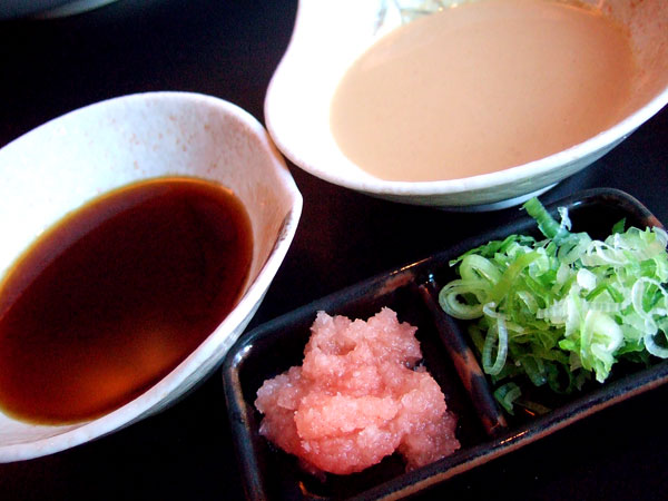 The platter, which you see at the top, is fairly generous. For vegetables, CoCoRo provides watercress, shiitake mushrooms (though no enoki), green onions, carrot, daikon and a mountain of napa cabbage, along with tofu, noodles and the beef. The beef is prime ribeye, I believe, and pretty good quality, though like Chiyo it's sliced a touch thick for my tastes. More frustratingly, rather than being laid out in a single layer, it's folded over and extremely difficult to separate, resulting in a lot of shredded beef. A lot of that may have to do with the temperature. Though the beef is usually chilled quite cold to facilitate slicing, ours was icy when it hit the table. The ponzu sauce was unusually strong on the dashi and quite smoky, and served with minced green onion and chili daikon. Though the smokiness threw me a little, I actually enjoyed it. I also enjoyed the fact that the ponzu was unusually intense, which helped as it became slowly diluted by the cooking water. I wish more shabu shabu places would do this. The goma su, sadly, still left me wanting. It was a smooth sauce, very, very nutty with just a bit of sweetness, but the vinegar (the su) was almost completely undetectable. Why the Chicago joints leave the su out of the goma su, I don't know, but it frustrates me.