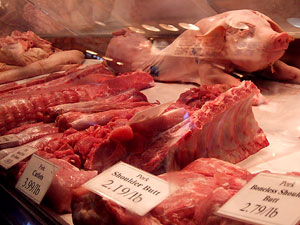 feels like a market, successfully maintaining a style of food shopping that has sadly fallen by the wayside. Though there are a few stalls that sell prepared foods, the market mostly contains meat and seafood purveyors, bakeries, dairy stalls and other basics. Pork was plentiful, and looked quite nice. I was underwhelmed by most of the beef we saw, though we managed to locate a few decently-marbled porterhouses at Larry Vistein's which grilled up nicely. The lamb at Hartman's, on the other hand, looked absolutely stunning, thereby cementing my cooking plans for the next trip. A surprisingly large number of stalls were selling all manner of smoked meats, which makes me wonder if this is a regional specialty. Seafood was passable, but unexciting.