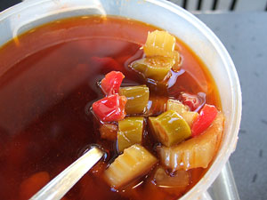 Max's beef is somewhat underwhelming, though it has a couple of nice touches. The juice's character is warm and mellow, if a little timid, and atop every table sits a large tub of the house giardiniera, which is a bold and tasty one. It's very tart, not nearly as spicy as you'd expect given the color, it's chock full of tasty vegetables, and it's abundant. The deep red-orange oil contains chunks of pickled peppers, celery, carrots, red bell peppers and even the occasional olive. But these high points weren't enough to save a beef that had some problems. The sweet peppers were largely symbolic and not very flavorful, a couple small chunks of yellow and two small strips of green. But most troubling was the beef itself, which was overcooked, dry and fairly tough. While I wouldn't call it offensive, there wasn't anything fresh about it. The late lunch hour may have been partially responsible, but the beef should never be allowed to sit in the juice too long before serving, and I suspect mine was. It's too bad... I felt like there was a better beef trapped in there.