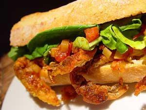 Relish and Fennel Frond Mayo Dom's Kitchen - Chicago With soft shell crab season slipping away, I decided to throw something together one night that turned out surprisingly well. Every once in a while, it's nice to have a reminder that a few simple ingredients can absolutely floor you if they're treated just right. I'm still not quite sure how this sandwich came out as well as it did, and I'm almost afraid to try it again for fear that I happened to catch lightning in a bottle that night and I'll just be disappointed, but man, was it good. It was all about freshness, I had some stellar ingredients to work with, I tried not to do too much with them, and everything just happened to come together perfectly. This is something I'll definitely be revisiting when we do our stint in Baltimore. | ||||