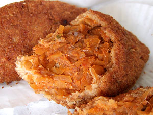 The second item I procured from Florida Bakery, however, was a completely new experience and an outstanding one, to boot. Devil Crabs are unique to Tampa, the magical marriage of the unwanted leftovers from two local food industries. It's a croquette of sorts, the shell made from stale Cuban bread, and the filling made from the last bits of dark crab meat salvaged from the local fisheries. Jeff put it perfectly, so I'll just quote him.