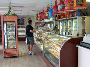 I first popped into Borinquen Meat Market, pictured above, one of many small Cuban groceries dotting the landscape. It wasn't the most bountiful ethnic market I've visited, but it was definitely one of the busiest. A small corner of the joint is devoted to a hot table with a handful of lunchtime selections. Though it was a little early for lunch, there was a mob of folks looking for cafe con leche, of which I partook while wandering from store to store.