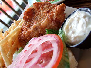 Fried grouper is a local specialty, and my ladylove picked a total gimme by going with the fried grouper sandwich. Hot, moist, tender and flaky in the middle, delightfully crisp on the outside, with a great fresh tartar sauce and a light, spongy bun. No frills, just awesomeness.