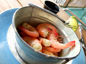 Fresh seafood, simply prepared was clearly the theme for the day. We started with a half bucket of their peel-and-eat shrimp, and I could have stopped them right there, ordered two more full buckets and called it a night. They were steamed with just a touch of seasoning and served swimming in clarified butter. I spritzed them with a bit of fresh lime juice, waved them over a bottle of tabasco, and proceeded to get lost in them. My ladylove declared them the best shrimp she's ever tasted. I'm certainly not prepared to go that far, but they were eminently scarfable and I explained that it was probably the first time she was eating shrimp that hadn't been frozen at some point. When I first started traveling to Asia, I thought the breeds of shrimp available overseas were inherently tastier than what we get in the States. It took a few years for me to realize that it has nothing to do with breed and everything to do with freshness. There's a sweetness to fresh shrimp that's lost when they hit the ice, and I need a dish like this every now and again to remind me of how shrimp are supposed to taste.