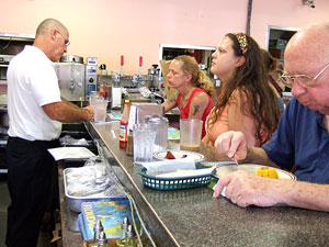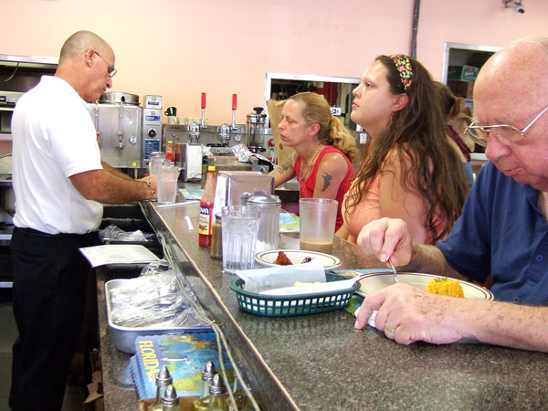My cup emptied, my curiosity for Cuban markets sated and my stomach ready for something more substantive, I fell upon La Teresita. It's a charming little dive with pink walls, three U-shaped jetties posing as counters and all manner of colorful folk. The stern fellow manning the counter had an ex-military look about him, a solid body gone slightly paunchy with age. Throw in the shaved head, and this guy was a surfboard and a wide-brimmed hat away from passing for Lt. Colonel Kilgore. The stools at 11:30 were completely filled with a dizzying spectrum of leathery Floridians, native Spanish speakers of all types, retirees, power lunchers and sun visor clad tourists.