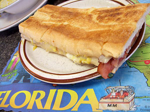 I moved onto the Cuban, making my first mistake of the day... which wasn't that I ordered the Cuban, but that I ordered the large instead of the small. A lighter lunch would have paid dividends later that evening. Those in the know inform me that Cuban sandwiches in Tampa fall into two camps -- Miami-style pressed sandwiches, and Ybor-style composed sandwiches. Based on my two-stop sample (the second in a moment), it appears that Cubans of the compressed rather than the composed variety dominate this particular drag.