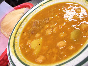 The menu is chock full of all manner of Cuban standards, most of which I'm completely unfamiliar with. I opted to start with the garbanzo soup, just one of a huge selection of eight or ten, mostly bean-based. It was thick, rich, and quite porky, with a nice chunk of fatty, melty belly sitting right on top.
