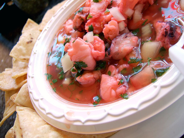 I didn't sample the soups (though I've heard their pozole is quite good) and the tamales that I've read they sometimes sell were nowhere to be found. Ceviche, however, was on the menu as a special. It's a seafood town and I love ceviche, so this seemed like a good direction to go. Sadly, the ceviche left an awful lot to be desired. I identified octopus and shrimp, though there were other seafoody bits of indeterminate origin, along with the requisite onion, tomato and cilantro. But it was mostly just watery and underseasoned. I found myself throwing in whatever I had on hand, which included some of the red salsa, a healthy squeeze of lime, the guacamole I left off the tacos and a dash of salt. Much improved, but still underwhelming. The ceviche did, however, give me a chance to sample Sinaloa's chips, which are really wonderful. They're thick and strong, but still very light, crisp and layered, almost like a fine pastry. Excellent, excellent chips. And even better, you don't have to order the ceviche to get them, as they're sold by the bag.