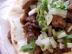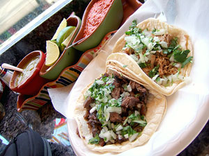Over my two visits, I sampled three of the available tacos, the res, pollo and carnitas. The tortillas were, as one might expect, really wonderful -- fresh, moist, light and still warm from that morning. The meats were all nicely, if minimally, seasoned and topped with the typical onion and cilantro. They came accompanied by a small cup of guacamole, but I preferred to leave them as-is.