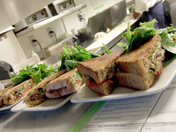 two, but we dropped into a couple of nice little spots while cruising around midtown. Checking out the Time-Warner Center, we hit the recently opened Bouchon Bakery. Even an hour or two after the lunch rush, Thomas Keller's high brow food court offering was sporting a 15-20 minute line at the takeout counter. I hear they have some rather nice sandwiches, soups and salads, but we just made a quick stop for pastry. Good stuff all around! We used to live right above a fantastic French bakery, so it's possible I wasn't as wowed as I should have been, but pain au chocolat and an eclair were both right on the money and straight-up traditional as they come. A bacon cheddar scone and zucchini brioche were less traditional, but no less excellent. I don't know that it's worth a significant detour, but if you're in the neighborhood and looking for something sweet, it's a great place to stop. I look forward to sampling the more substantial fare at some point.