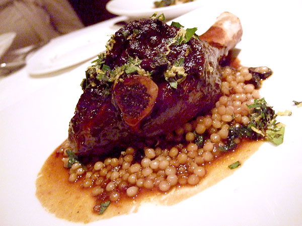 When I lived in San Francisco last year, this was always one of my favorite places, despite the fumes coming from all the blue hairs going to the symphony and opera down the street. I will have to try it again next time I go out there. That lamb shank looks delicious. I am still hoping that Jamie will take it all.