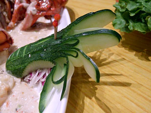 Reading back, I think I've given a slightly more positive impression than I had. I did, indeed, have some really wonderful dishes. I'm not sure I found any of them transformative, and it said something to me that the simplest of them all was the best of the night. But these folks are bringing an angle to Vietnamese that I've certainly never come across (though that's undoubtedly a function of my lack of experience). Gene is trying to do something really special with Present, and that was simultaneously the meal's greatest strength and its greatest weakness. At times, it made for some rather inspired dishes. At others, it seemed like a lot of superfluous window dressing that at best (cute carvings like the lobster to the right) did nothing for the food and at worst (the uninvolved shrimp) actually distracted from it. I'm not sure they really need a chef who spends so much time carving. I'd rather the lobster come out hot and the fish not be leathery in places. But you have to appreciate the moxie, and when it works it really works. It's hard to get a handle on what a regular meal here would be like, since ours involved so many off-menu items and such careful attention was paid to our table. But these are passionate, friendly people and it's clear they can do some truly excellent things. I suppose this write up may have been more meaningful four months ago when the place had barely been covered, but hopefully it drives home the idea that Gene is stretching and trying to achieve great things. If this dinner was any reflection, he doesn't always succeed. But the successes make me very glad he's trying.