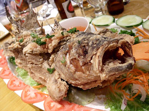 From there, we moved onto the fried seafood portion of the evening which, sadly, came up short. "Shrimp in the Fresh Ocean" were flavored salt and pepper fried shrimp atop chunks of pineapple and under a pile of fried shallots. The flavor on the shrimp was fine if unexceptional, but the shrimp shells weren't nearly as crisp as they should have been, leading many of my dining companions to peel when they should've just been popping the whole thing. "Fish in Emerald River", an enormous whole fried Rockfish, was a big disappointment. It was overfried, tough and heavy, and I'm not convinced that Rockfish is a good choice for this preparation at all. I adore whole fried fish, and I know others have spoken highly of this dish, so perhaps it was an off night. But it was definitely off.