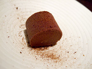 Shockingly, L2O does, in fact, serve a non-aquatic protein from time to time. And while we weren't fortunate enough to be treated to the Miyazaki Wagyu (no surprise -- it's a $75 supplement for a 3-ounce portion on the prix fixe menu), pork belly hasn't yet gone the way of raw tuna for me, and I'm always happy to see a chunk of it land on my plate. Here, it was doused with a truffle jus and bracketed by potatoes, a thin sliver on the left and a caramelized Yukon gold on the right that was stuffed Twinkie-style with a creamy pureed potato filling. Though the flavors were straightforward and spot on, I confess that I'm unsure of how I feel about the pork belly. It was significantly firmer -- perhaps even bordering on tough -- than convention would dictate. I'd consider it a possible error, but a little reading around reveals that I'm not the only one to have been caught off-guard by the texture. A kitchen like this doesn't habitually botch their dishes, so I'm forced to conclude that it was completely intentional. I'm not seeking fork-tender pork belly monoculture. But I'm not convinced this wasn't a little tougher than it should have been. When handling the flatware without launching it becomes a challenge, I'm thinking there's an error of either conception or execution in there somewhere.
