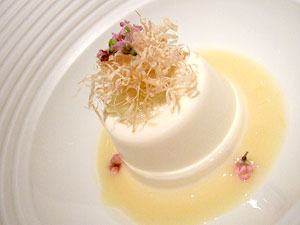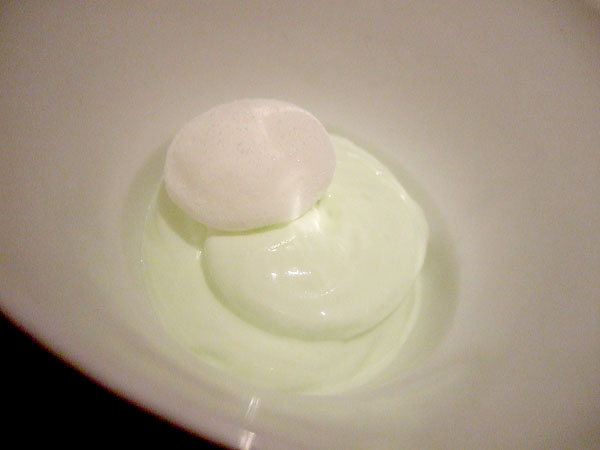 Though I knew the name, I knew little of Gras' cuisine before sitting down to dinner. On one hand, given how pervasive the Japanese influence was on this menu -- about half of the dishes put uniquely Japanese flavors front and center -- I was a little surprised that I couldn't find any reference to him spending any length of time cooking in Japan. But upon further reflection, I suppose I shouldn't be. There's little on display in the way of Japanese technique. Rather, these dishes are those of someone who has fallen in love with Japanese flavors and worked them into his own style, in this case that of a French background with a healthy dose of MG. Gras' use of MG, however, is fairly restrained, as it goes. Oh, he has the toys. Reading through the L2O blog, you can only envision Rich Melman sitting there, shaking his head as invoices for dehydrators, Pavaillers, freeze-dryers, cold-smokers, Hawaiian ice shavers, Gastrovacs, rotary evaporators, etc. go flying by at breakneck speed. But this isn't the "pay attention to me!" MG of some of his contemporaries. There's some flash, but there's also a lot of restraint, and I suspect this approach is more indicative of the future of zany kitchen technology.