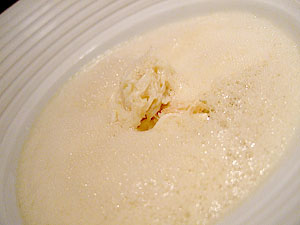 The next dish was anything but. I don't think I was influenced by my joy over once again seeing foie gras on Chicago's menus, but it couldn't have hurt. The thought that not long ago this would have been contraband is simultaneously maddening and hilarious. Peekytoe crab was poached in butter and almost lost in a sea of foamy foie gras emulsion. The flavor was explosive and decadent, and the light, frothy texture of the foie gras emulsion took something that might have ordinarily steamrolled the delicate crab, and instead turned it into a supporting flavor that maintained its luxurious decadence without completely stealing the spotlight. This was one of the best uses of foie gras I've seen in a long time, a powerfully flavorful dish, and probably my favorite of the evening.