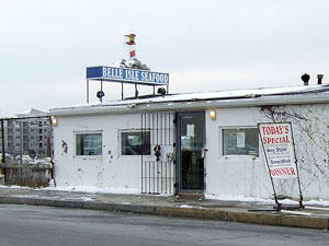 Our next stop on the Roll-Off takes us to Belle Isle Seafood, a highly regarded little seafood place that's purported to have an exceptional lobster roll. Located in East Boston, right on the edge of Winthrop, nestled against the base of a bridge that overlooks the ends of runways 4L/22R and 4R/22L of Logan International, and it absolutely looks the part.