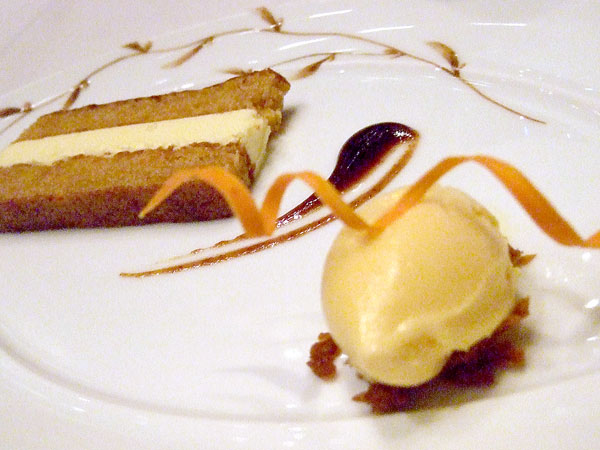 The carrot cake dessert looks as forgettable as you describe it. I've never had a fancified version of carrot cake better than a well-done, big ole hunk of regular carrot cake, but I like the idea of a cream cheese ice cream.