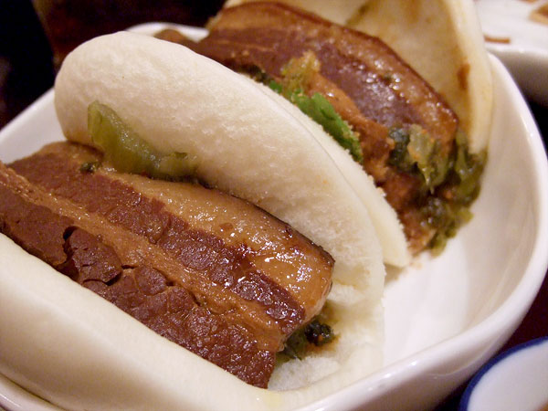 We also went for the pork belly -- surprise -- which was a bit of a new and interesting preparation for me. Thick slices were stewed or perhaps steamed tender, and then folded into a small bun and topped with fresh cilantro and some sort of pickled green that I suspect was mui choy. The little packages were great, with a deep caramelized flavor and a nice bit of contrasting tartness from the greens and herbal freshness from the cilantro, even if the pork could have been a little more tender and lush for my tastes. The curveball, however, was sprinkled over the top. I swear it must have been granulated sugar, or perhaps a seasoned version thereof, but it added a little sweetness and a really unusual texture that, while jarring at first, I found I really enjoyed. For me, this was the other big hit of the night.