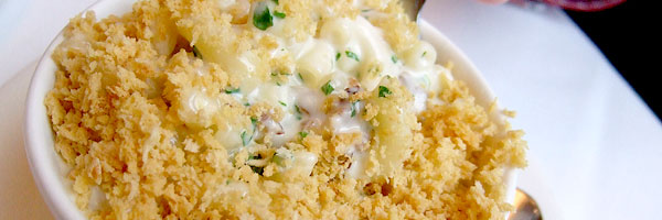 Market's a pretty laid back little joint, right on the main drag in downtown St. Helena. Though clean and almost a little elegant, it never projects an upscale vibe, particularly at lunchtime when sandwiches dominate the menu. But I can see how it might come across as a little less casual and a little more classy at night when the lights are dimmed and folks dress accordingly. The menu's pretty typical for what I've seen in the valley... New American, very seasonal, the usual. Of course, it provided me with an immediate issue because I'm not a big mac and cheese guy, and yet mac and cheese is a dish that they're known for. After hemming and hawing for a bit, our server sensed my consternation and offered to start us off with a side of it. Perfect! I didn't regret not having it for my main, but I can see how many would. It's a very loose, creamy rendition with cheddar, Parmigiano Reggiano, plenty of minced herbs and a horde of tiny bits of crisp bacon, with a breadcrumb top. Upscale mac and cheese interpretations are a dime a dozen these days, and for all I know these guys were way ahead of the trend, but either way there's no denying that it's a particularly enjoyable rendition thereof.
