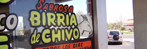 Going back a couple of weeks ago, a post popped up on the Phoenix Chowhound board... a fellow who was looking for birria. Tacos, specifically. Though most closely identified with Jalisco, birria is widespread enough that I was surprised only a couple of places were mentioned, neither of which were dedicated birrierias. Figuring there had to be more, I did the simplest thing I could think of to find some. I ran "birrieria" through a Google Maps search, and came up with four places that were named such. So I posted them, and was even more surprised that nobody, apparently, had tried them. Huh. Well, Yelp's not my style, but they're more widely used these days and the whole race to be first thing means their coverage is usually a little wider. Across all four spots, only one review. Clearly, I'd have to take matters into my own hands.