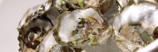 | Kumamoto Oysters with Yuzu, Chili Gelée, Micro Shiso and Fresh Wasabi | Dominic Armato |