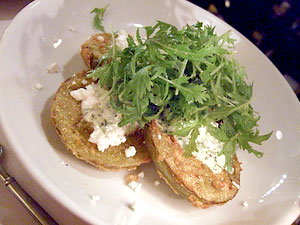 The middle of the menu is absolutely dominated by vegetables, which outnumber the entrees two to one. I'd say this is simply playing to the kitchen's strengths, but that would imply the kitchen has weaknesses, which I have yet to discover. It also probably has much to do with the fact that FnB has a pretty strong commitment to sourcing as much local produce as possible. The smoked trout salad is more salad than trout, with fennel, arugula, orange, onion and ginger, and wouldn't be so notable if the vegetables weren't so pristine or the trout so fresh and delicate. Fried green tomatoes are killer, tart, hot and crispy and perfectly punctuated with a creamy, fresh green goddess dressing, crumbled feta and a bushel of greens. Again, it's all about ingredient selection and execution. There's no rocket science, here. Just killer produce perfectly prepared.