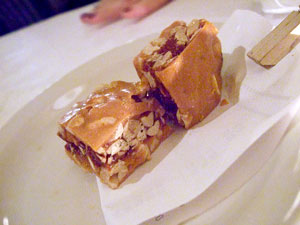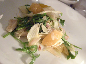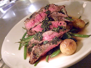 I'm a little embarrassed to admit that I've only sampled a single entree at FnB. What can I say? I keep eating vegetables. But the one big dish I tried was a knockout. Grilled lamb tenderloin was billed alongside snap peas, potatoes, olives and mint. It's a very rustic plate, tender, intensely-flavored meat in a puddle of natural jus with a heavy dose of fresh mint and just a occasional stray bit of tart, salty olive for punch. My favorite touch, however, was that the snap peas were mixed with haricot verts. It seemed so odd not to simply choose one or the other, but damned if they didn't work together, one crisp and sweet, one tender and vegetal... ditching convention in a subtle way that yielded compelling results. And compelling the dish is, as pure and beautiful an expression of lamb as I've tasted in a long time.