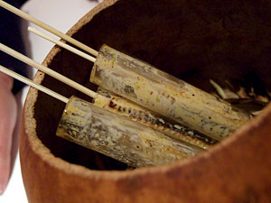 It's a business dinner, after all. But while a street corner comal was my primary goal for the trip, I can't say I was broken up over the prospect of hitting someplace with a reputation like Enrique Olvera's flagship restaurant, Pujol. Unlike Patricia Quintana, whose Izote we checked out last trip, Olvera is one of the young turks of upscale Mexican cuisine, only in his mid-30s but already with a ten-year-old internationally acclaimed fine dining restaurant under his belt. Going in, I knew the name, I knew the food was upscale, and I knew that I could probably expect something special. Beyond that, I opted not to do any research, preferring to go in without any preconceptions. The restaurant was recently redesigned, and it was evident from the get go that if the decor is any indication, Olvera is doing his utmost to contemporize the cuisine. It's a food paparazzo’s dream, dark, blank grey walls surrounding 15 tables with white tablecloths and brilliant spotlights, stark and modern and obviously intended to put the focus on one place -- your plate. Our hosts were kind enough to indulge our desire to try the full tasting menu, and the first item to hit the table was an amuse of skewered baby corn that I believe had been pickled, grilled and then slathered with a completely unidentifiable (to me) mix of creamy and earthy elements that may or may not have included huitlacoche and/or escamoles... ant eggs. Since I've never sampled escamoles before, I can't say. I only know that I think one of our hosts said something about ants before suddenly becoming reluctant to translate the dish's description for me. Or he may have been referring to one of Olvera's signature dishes that serves escamoles like caviar, I can't say. Too bad... he needn't have feared. But in either case, the corn was vinegared, lightly grilled and had a sort of smoky, earthy flavor that was a great way to warm up. Excitement was building.
