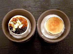 A Chawanmushi duo? Green wi th envy! One of my favorite dishes, if a tad underappreciated by the west. The cold one with the yuzu seems like a winner. Most of the really good ones I've had have noticable citrus/acid.