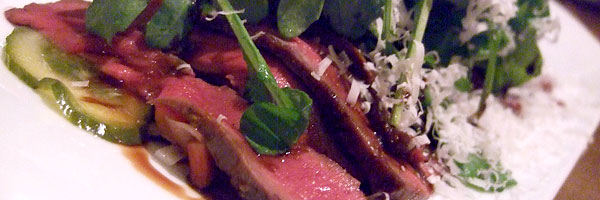 Any chef who's willing to put heart on the menu knows the way to mine. I'll resist rehashing the lecture, but suffice it to say that I'm always beyond pleased to see this cut represented, particularly when represented so well. It was plated with pickled radishes and ramps, slivers of bread and butter pickle, arugula, balsamic and a bit of grating cheese... almost a play on the widely beloved (if not strictly traditional) beef carpaccio. The knock on heart is that, as a muscle that's in constant use, it's tough. Not so, here. Given its medium rare color, I was shocked by how tender it was, possessing the soft, melting qualities of a filet with the full flavor of a tougher cut. I've no idea of the process, but it was a winner. My lone complaint would be that the vinegar in the pickles got a little too aggressive, and started to distract from the meat. But this is picking nits. There's absolutely nothing wrong with heart done this well.
