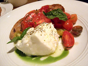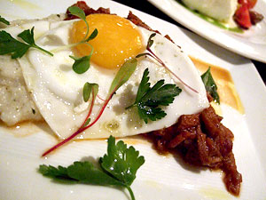 The ribs were a surprising addition to our selections, not only because they seemed a touch incongruous, but also because of the memories they evoked for me. The supporting flavors, rosemary and a fine 20 year balsamic, were decidedly Italian. But the ribs were prepared in a fashion that actually brought to mind the ribs I've had in China. This wasn't the tender yet toothsome smokiness of American BBQ, nor was it the boiled fall-off-the-bone faux BBQ meat Jell-o that's widely popular in the States. Rather, if I had to guess, my money's on roasted, fried, and then finished on the grill, resulting in the kind of juicy on the inside yet golden and crisp on the outside character that I'm accustomed to getting on the other side of the Pacific, with the added bonus of a little wood smoke. My natural instinct was to start looking around for the little bowl of salt with Sichuan pepper. But the vinegar and rosemary was a delicious European angle on a method of rib preparation that I'm used to encountering in an Asian context. Very good stuff.