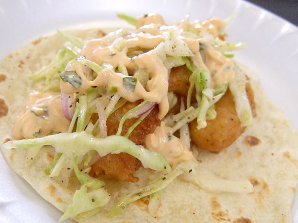 Other taco variants include, firstly, tacos dorados, filled with beef or chicken, rolled, deep fried and smothered in earthy black beans, a handful of crisp lettuce, shot of crema and a sprinkling of queso fresco. No matter how well-prepared, tacos dorados have always kind of felt like bar food to me, and while Atoyac's don't quite liberate me from that prejudice, they're done with a great deal of care, crunchy and well-seasoned and fun to eat. Give me a few beers and I'd probably order a dozen of these. Another taco is one of my favorite things to emerge from this kitchen, a Lenten special that really, really needs to be a regular menu item. The Baja style fish taco is fabulous, a griddled flour tortilla wrapped around a searingly hot and dangerously crispy piece of fish along with shredded cabbage, a few slivers of onion and spicy crema. The fish is swai, an Asian catfish that isn't sold under that name here since domestic catfish farmers aren't too keen on the competition. It's a step above tilapia, avoiding its muddy flavor, and while swai won't be mistaken for a premium fish, it's hard to argue with price performance. These tacos are executed so well I wish they were made with a premium fish, but the fellas are wringing an awful lot of flavor out of that $1.50, so I'm finding it hard to complain. If you go and they're still on the specials board, order one and then tell Dan they need to be on the regular menu. I don't want them to disappear and I need some backup here.