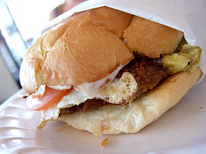 Tacos are what ostensibly got these fellows to bolt their previous environs, so tacos seem like a pretty good place to start. The regular menu offers carne asada, al pastor, lengua, chorizo and cabeza, with others rotating in and out on a specials board to the side. One downside, though I imagine it helps keep them absurdly cheap ($1 apiece), is that all of the meats are of the stewed or griddled variety. There's no grill for the asada and no trompo for the al pastor... bummer. But even with this handicap, the flavors all pop, the tortillas are pliant and sizzled up right and the salsas, though very simple, are fresh and well-balanced. I'm especially fond of the lengua, which is a succulent, moist and stewy concoction that has a big, full flavor and ought to make converts of the variety meat averse. Likewise the off-menu (recommended by Dan) Campechano, which is simply a combination of Atoyac's pungent (not to mention iridescent) chorizo and carne asada. Much as I adore chorizo, I've often found a taco that holds nothing but to be overkill. No such issue here, and though it may seem like a sort of gratuitous heaping of meat upon meat, it's a widely-known combination and with good reason. They complement each other well.